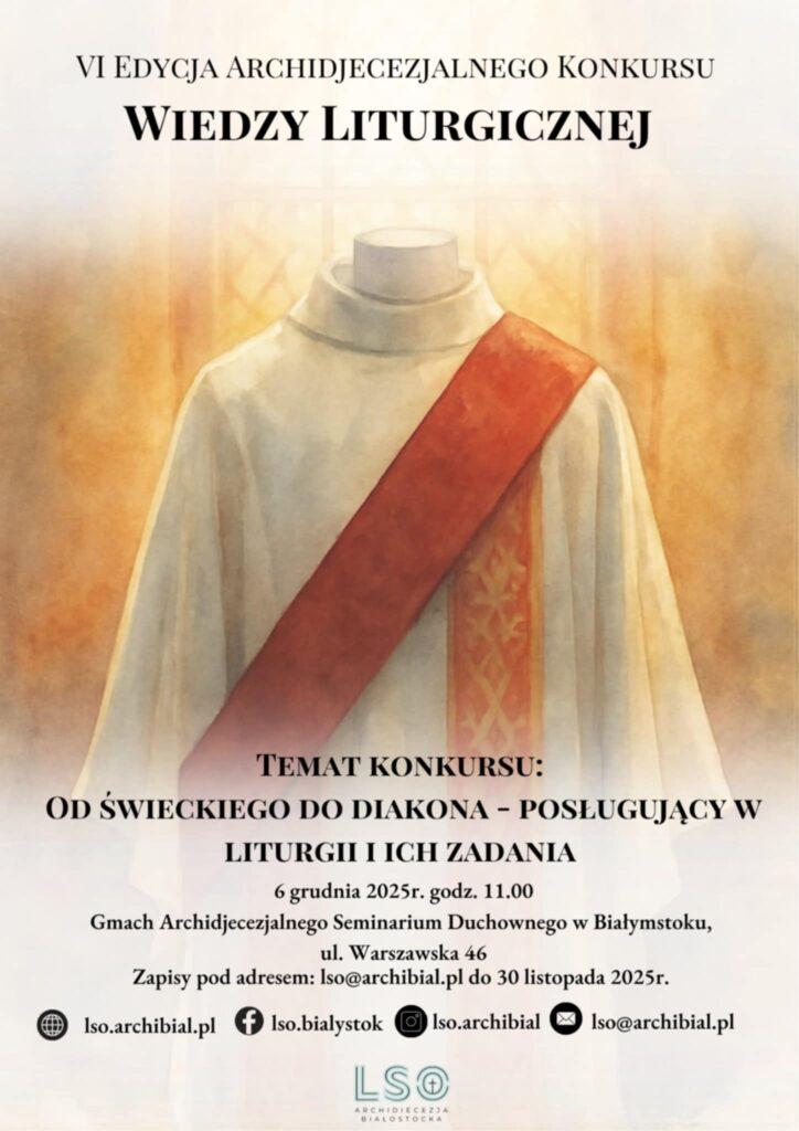 Podobnie jak w poprzednich latach zorganizowany zostanie konkurs wiedzy liturgicznej dla Liturgicznej Służby Ołtarza Archidiecezji Białostockiej.